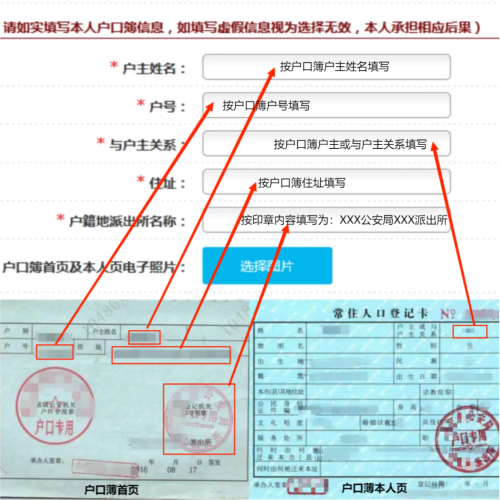 特別提醒:為確保申請(qǐng)享受放寬政策人員報(bào)名信息審核通過,請(qǐng)按下列示例圖片填寫戶口簿信息。如有戶口簿毀損、手寫痕跡、字體不清、印章模糊等無法識(shí)別信息的情況,請(qǐng)盡快到戶籍地公安機(jī)關(guān)重新打印戶口簿,清晰拍照后上傳,避免耽誤報(bào)名。
