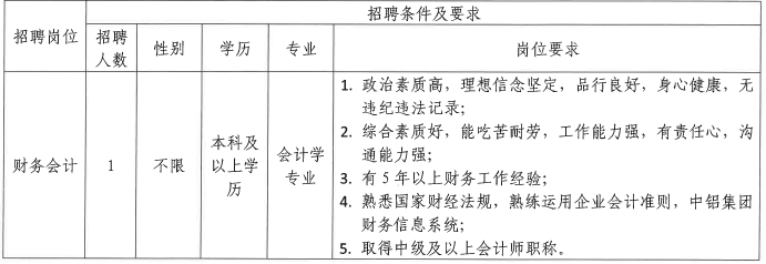 根據(jù)工作需要,云鋁匯鑫公開(kāi)招聘財(cái)務(wù)會(huì)計(jì)人員,現(xiàn)將有關(guān)事宜公告如下: