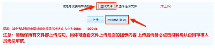 3.上傳最低生活保障家庭人員證明材料(材料要求:低保證或家庭所在地的民政部門出具的城鄉(xiāng)低保證明的掃描件,需在材料空白位置注明報考者姓名、證件號碼和聯(lián)系電話)。證明材料上傳成功后,點(diǎn)擊“材料確認(rèn)(務(wù)必)”按鈕。