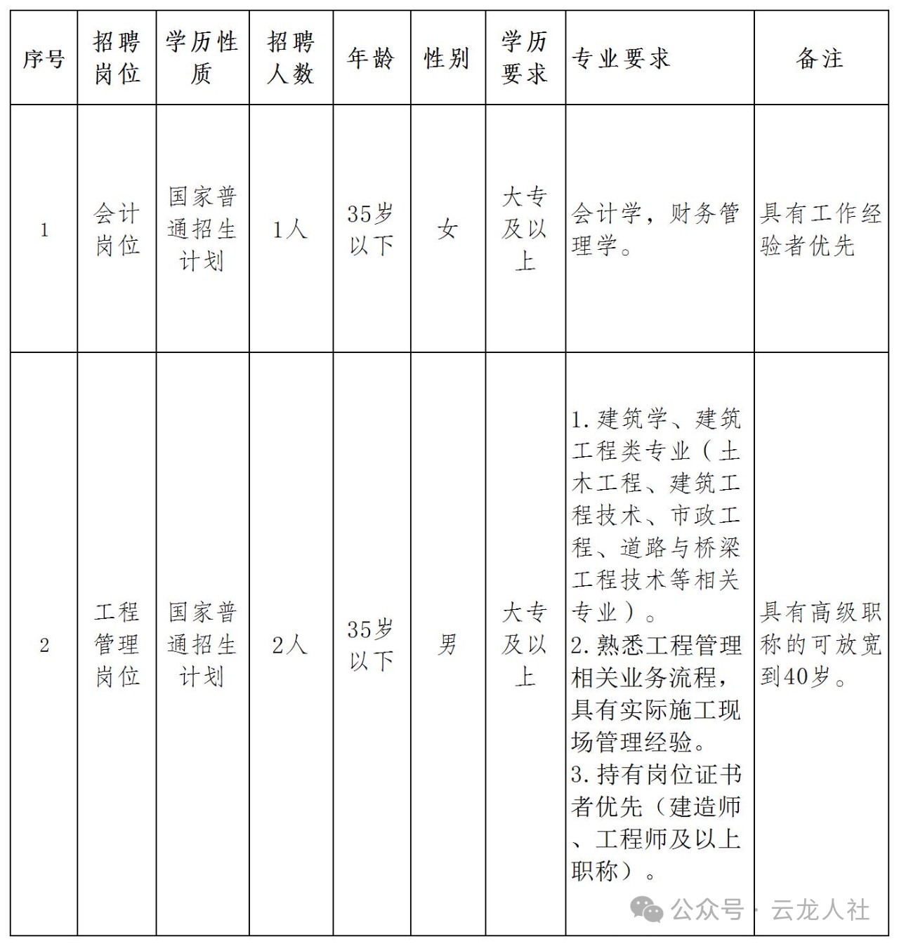云龍縣城市建設(shè)投資有限公司面向社會公開招聘公告