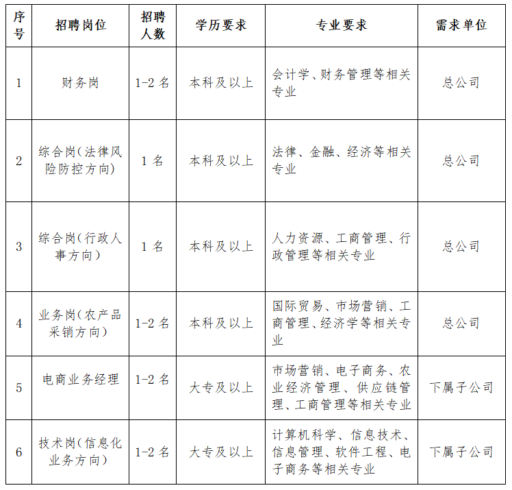 現(xiàn)結(jié)合公司發(fā)展需求,計劃面向社會公開招聘財務(wù)、法務(wù)、行政、業(yè)務(wù)采銷、電商運營、信息化技術(shù)崗位人才。