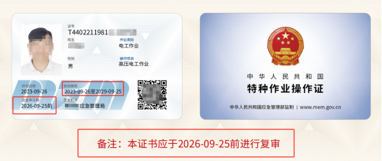 方式一:通過登錄應急管理部特種作業(yè)證書查詢官網(wǎng)(https://cx.mem.gov.cn/)查看復審時間。