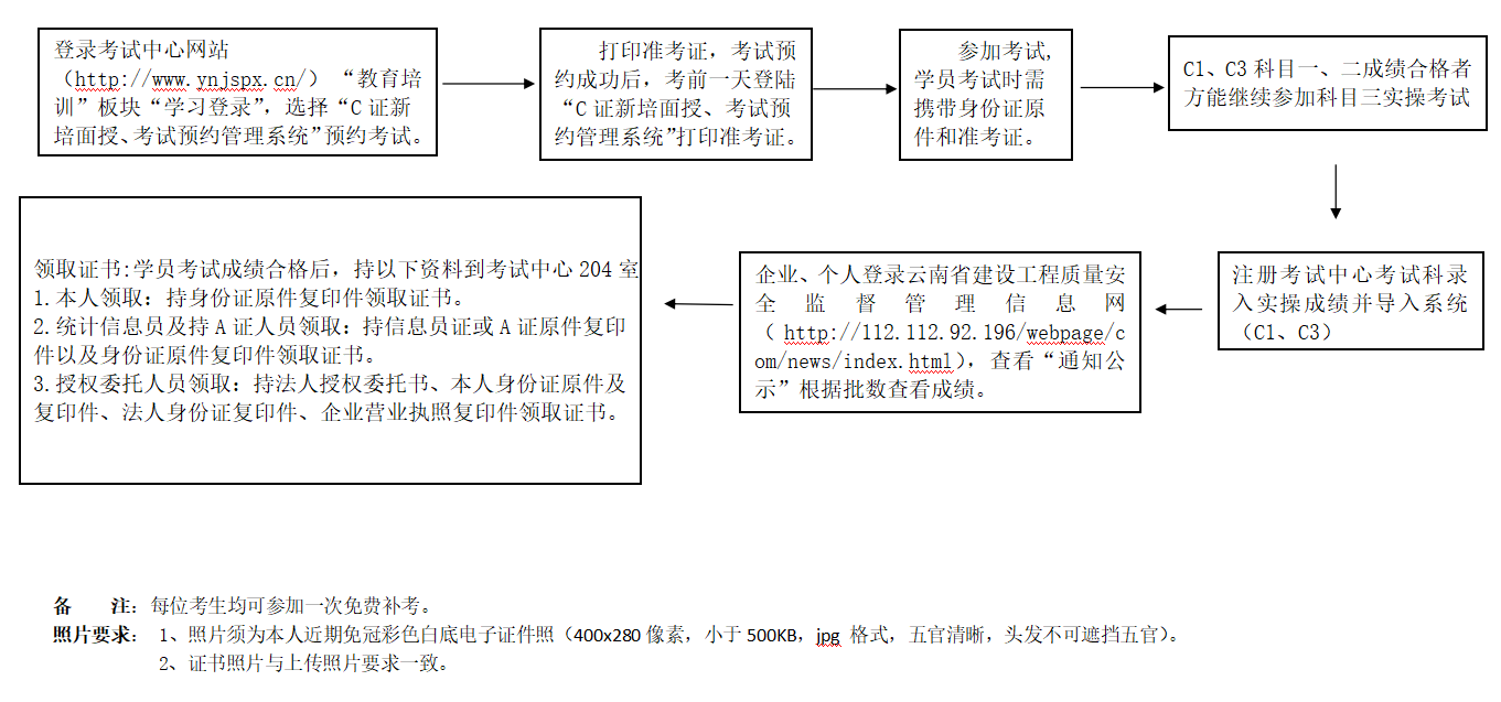 云南省建筑施工企業(yè)專職安全生產管理人員(C證)考試業(yè)務辦理流程